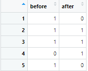 sample = read.csv("F:/Sw-tastics/Statistics Analysis/example/11. Mcnemar test.csv", header = T)