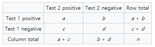 참고로, 맥니마 검정은 아래 표 기준으로 b+c > 25가 되어야 한다.