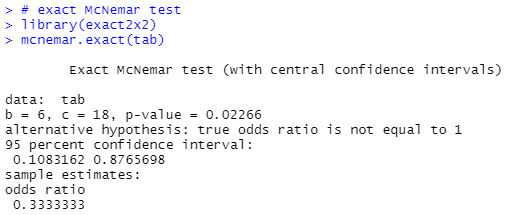 sample = read.csv("F:/Sw-tastics/Statistics Analysis/example/12. exact Mcnemar test.csv", header = T)