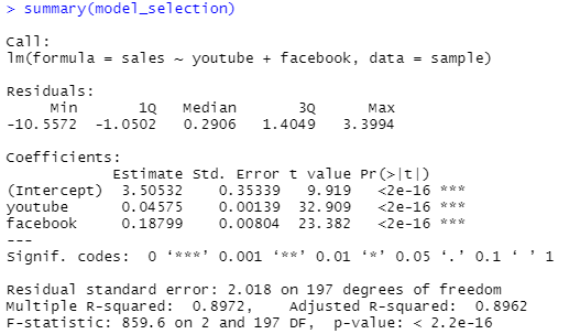 이전 모델과 비교하면, Newspapaer 변수가 제거 되었다.